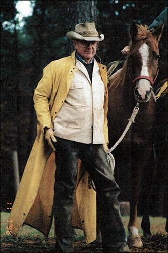 After retirement, he and Barbara moved to Oklahoma where they spent the next 35 years, raising cattle, attending the Alamo trail ride and riding horses (and mules) all over southeastern Oklahoma. He served as President on the Eastern Oklahoma Medical Center Hospital Board for 14 years and installed the rural water system in Haw Creek. He lived his life on his own terms and died peacefully at his home.